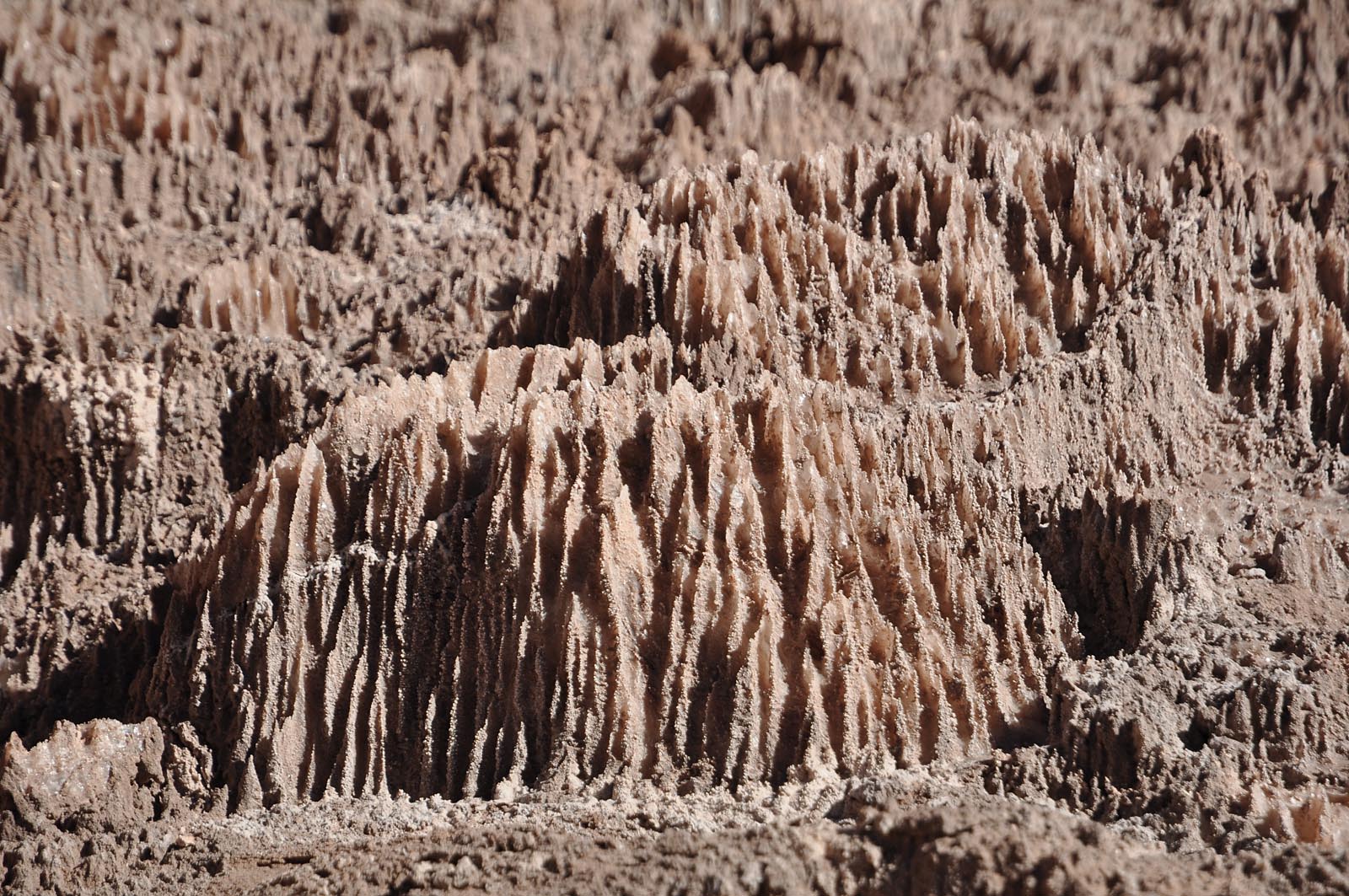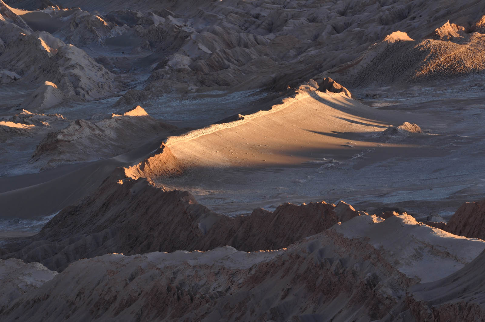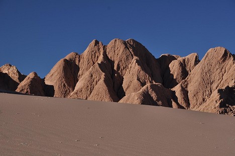 Das Tal sieht sehr ähnlich aus wie das Death Valley in den USA, hier in Chile bestehen aber die meisten der kuriosen Felsformationen aus Salz und nicht aus Sand. Da es aber sowieso nie regnet, können sogar Felsen aus Salz sehr alt werden. Werden die Felsen besonnt, knirschen und knacken sie laut.