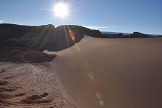 Das Valle de la Luna ist ein extrem trockenes Tal in der Atacama- Wüste. Wie der Name schon sagt, sieht es dort aus wie auf dem Mond. Da Daniela immer noch nicht ganz gesund war - die Rache des Montezuma hatte seit Uyuni zugeschlagen - teilten wir uns auf. Peter ging mit Gili, Dodo, Andreas und Emilia mit dem Bike ins Tal, während Daniela eine Tour buchte und vom Bus chauffiert wurde. Interessanterweise trafen wir uns nie unterwegs, obwohl Peter bis lange nach Sonnenuntergang beim letzten Aussichtspunkt blieb, um die schöne Abendstimmung mit der Kamera einzufangen (und danach natürlich in vollständiger Dunkelheit im spärlichen Licht der Stirnlampe heimradelte?).