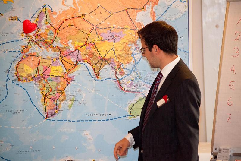 Das Abendprogramm hiess "Scotland Yard". Wenn wir mit Freunden mal ein Brettspiel hervornahmen, dann war es ganz bestimmt Scotland Yard. Das war unseren Freunden aufgefallen - Patrick, Andrea, Christoph, Michi, Maya, Dominik und Mike hatten extra ein eigenes Scotland-Yard Spiel auf einer grossen Weltkarte aufgezeichnet und liebevoll Spielfiguren, Tickets und alles was es braucht vorbereitet.