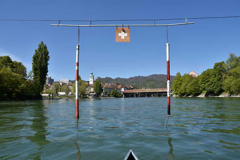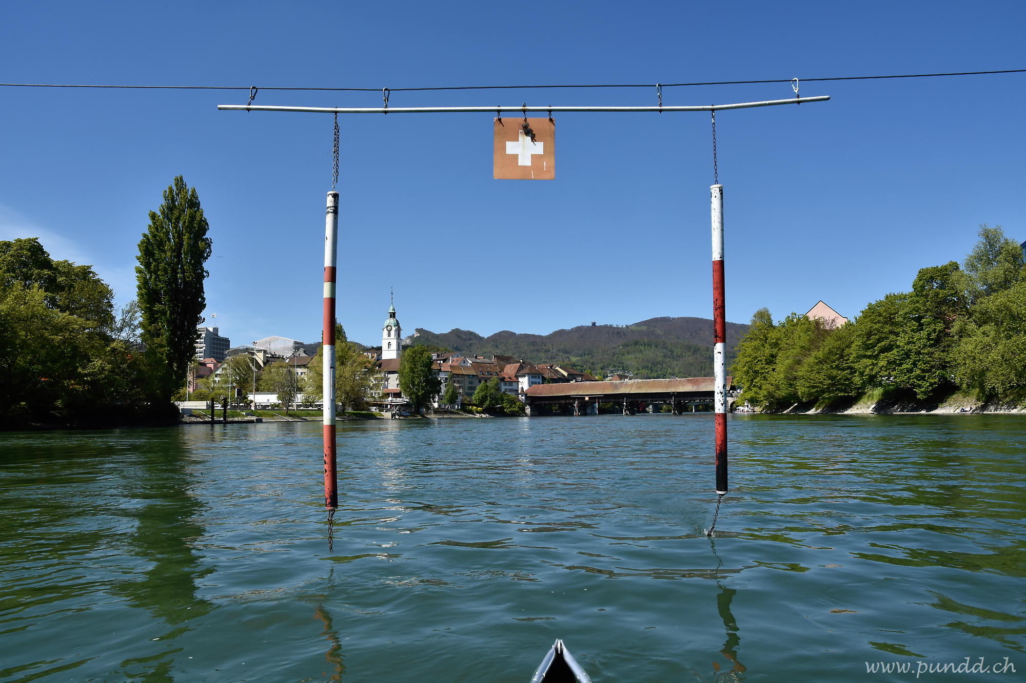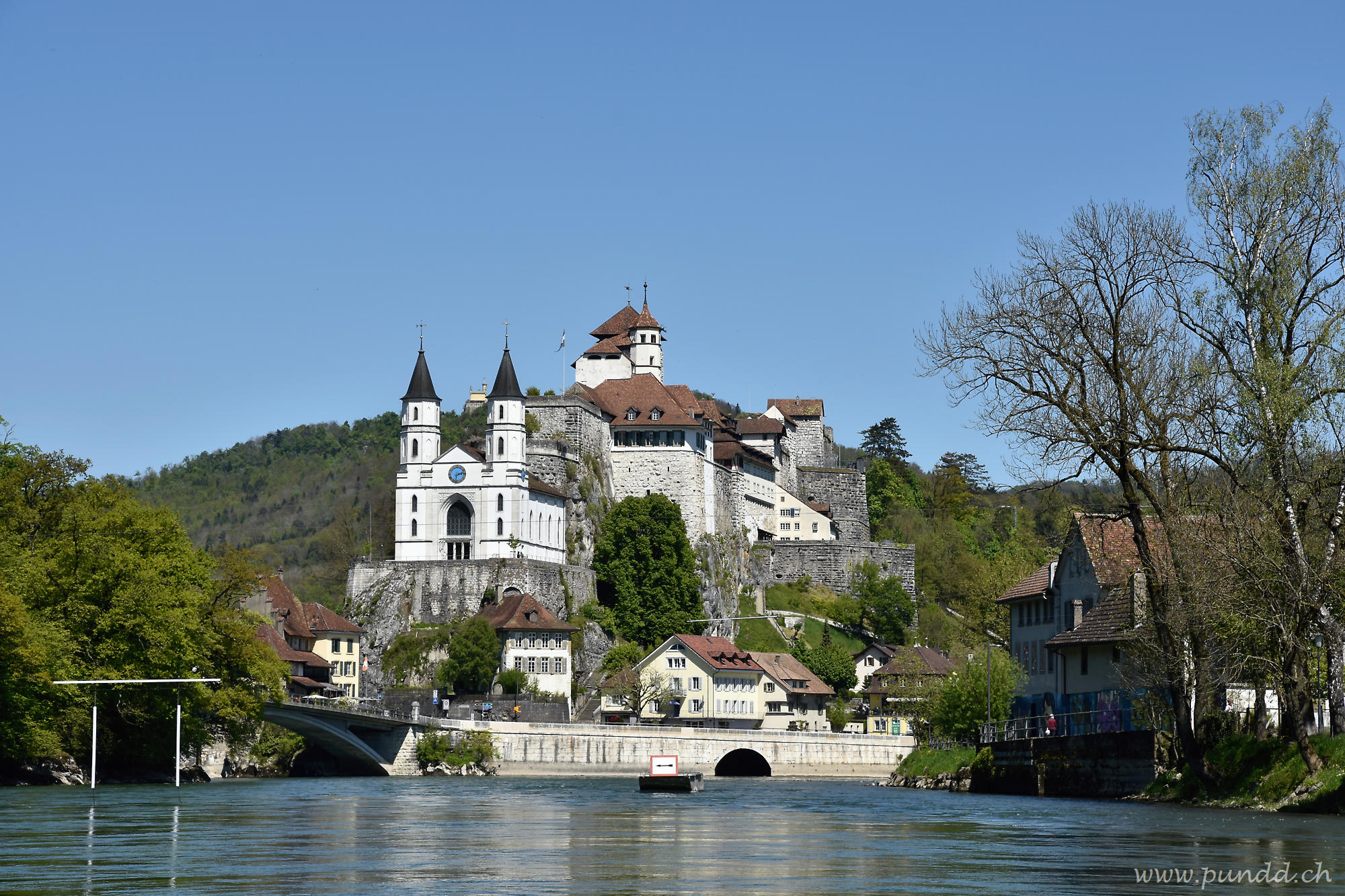 Bei Aarburg fliesst die Aare um den grossen Felsen, auf dem die mittelalterliche Festung steht. Deshalb bildet sich hier ein riesiger Wirbel, auf dem früher die Flösser ihre Baumstämme sammelten. Wir liessen uns natürlich auch einige Male vom Wirbel drehen.