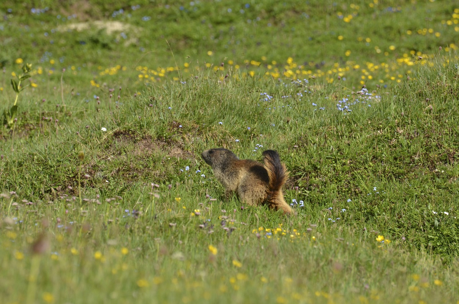 Vom Passo San Giacomo aus führte uns der Weg nach Italien, zum Laghi Boden. Hier erfreuten sich die Murmeltiere an den vielen saftigen Alpenblumen.