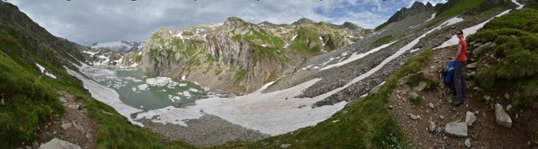 Am nächsten Morgen stand die längste Etappe der Tour an. Zuerst über den Pass Btta di Val Maggia, vorbei am Lago dei Matörgn und hoch zum Stausee Lago dei Cavagnöö. Die Gegend um den Stausee ist sehr eindrücklich: Ein tief eingeschnittenes Tal, welches auf drei Seiten von hohen Bergen umgeben ist.