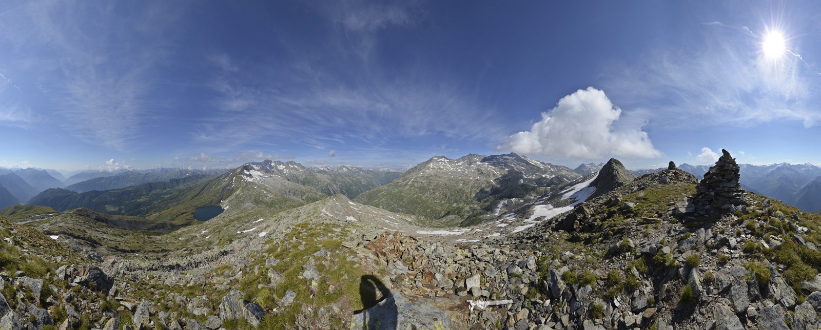 erklimmen. Er nahm einen kleinen Umweg, um vom Cima di Garina ein Panorama