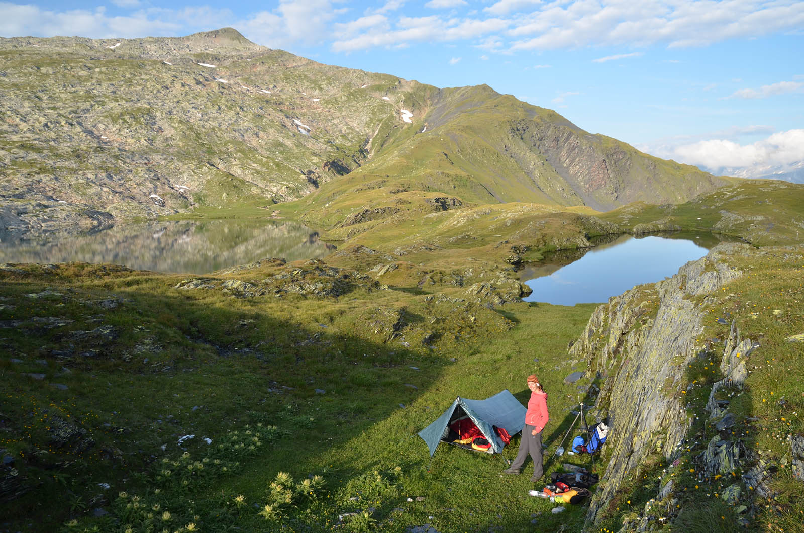 Natürlich reisen wir nicht jedes Mal ins Ausland, um unserem Lieblingshobby zu frönen - das geht auch hervorragend in der Schweiz. Nach unserer Weltreise haben wir unsere Ausrüstung noch etwas erleichtert und waren damit schon auf zahlreichen Touren in den Bergen unterwegs. Es gibt für uns nichts Schöneres als abends unser Mini-Zelt aufzuschlagen und beim Nachtessen die Sonne hinter den Berggipfeln verschwinden zu sehen. Mit etwas Glück schauen dabei auch noch ein paar Steinböcke vorbei...
