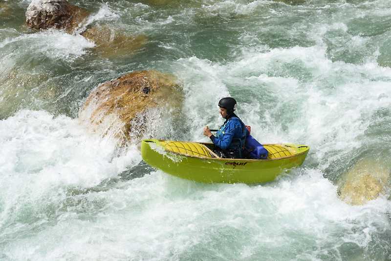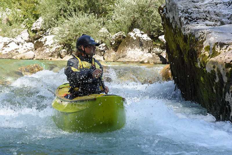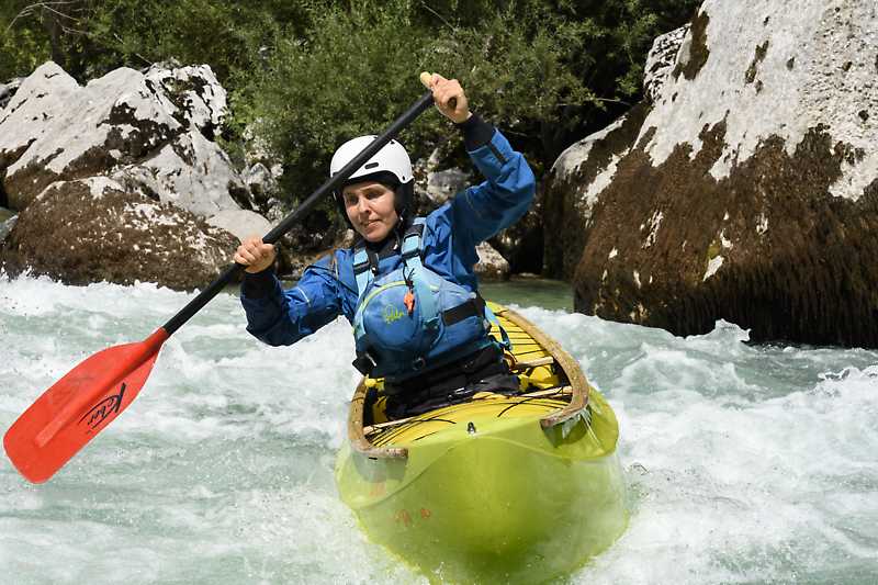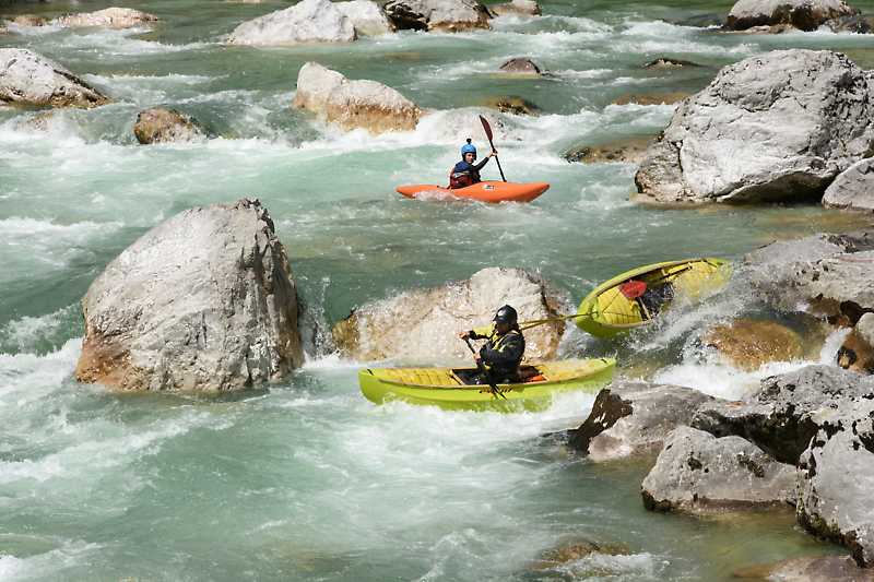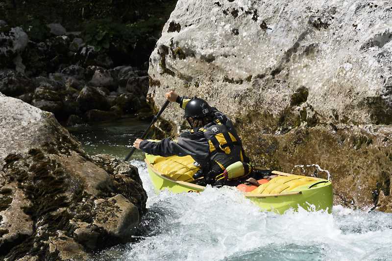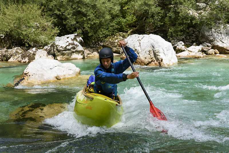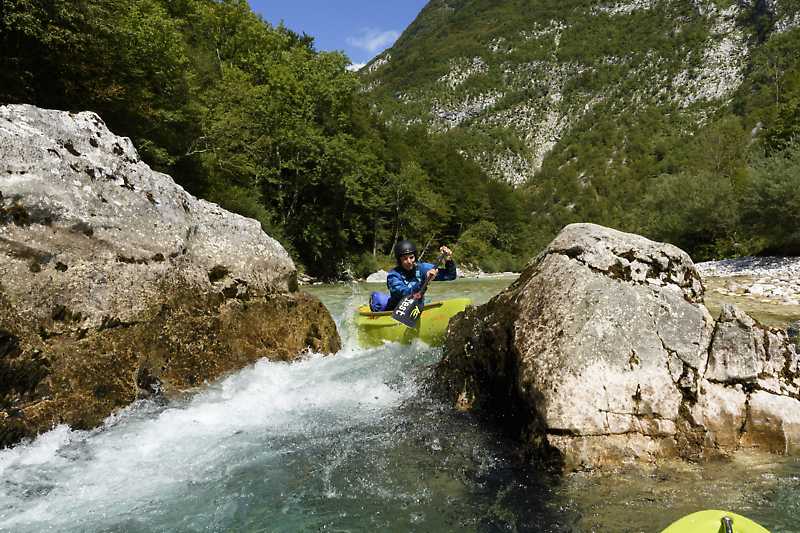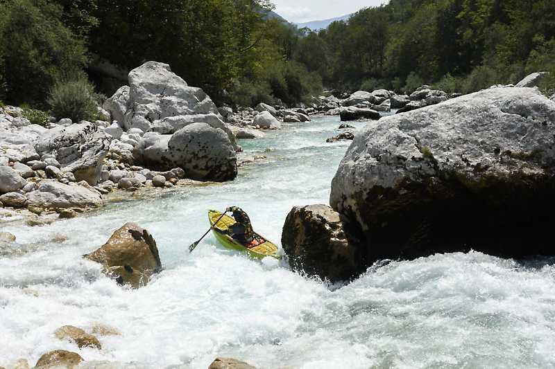 Nach Sprenica II wird der Fluss wilder und spannender (Wildwasser III). Wir manövrieren zwischen unzähligen Felsblöcken durch, immer wieder laden Kehrwasser, Walzen und Wellen zum Spielen ein.