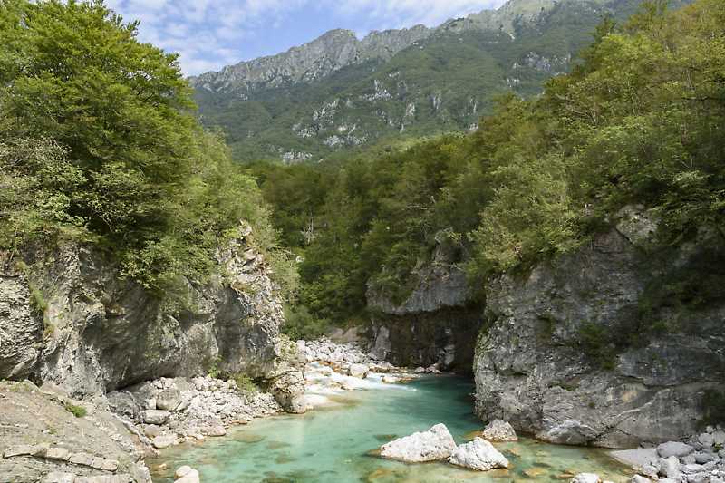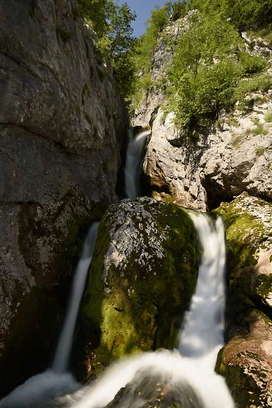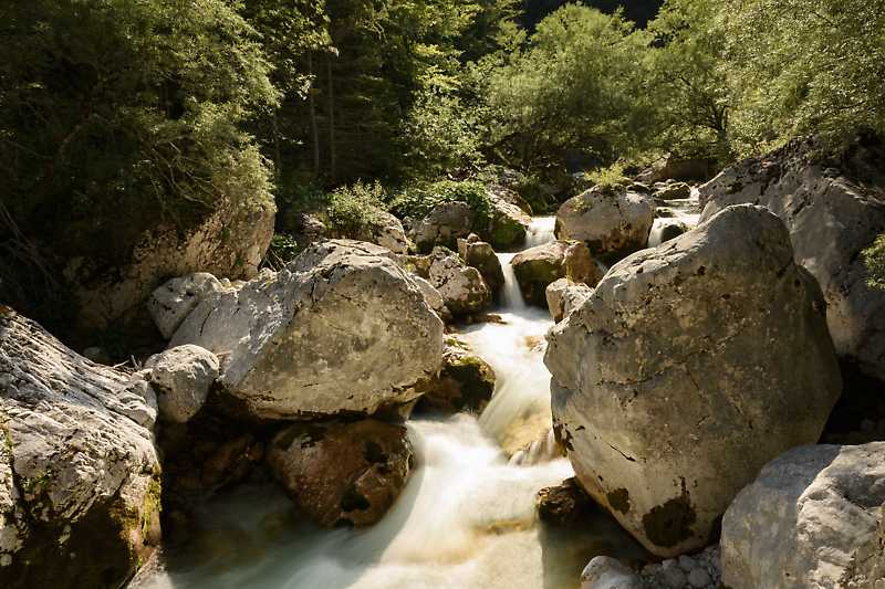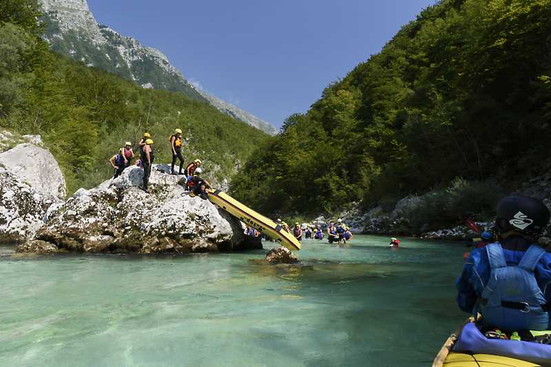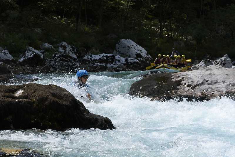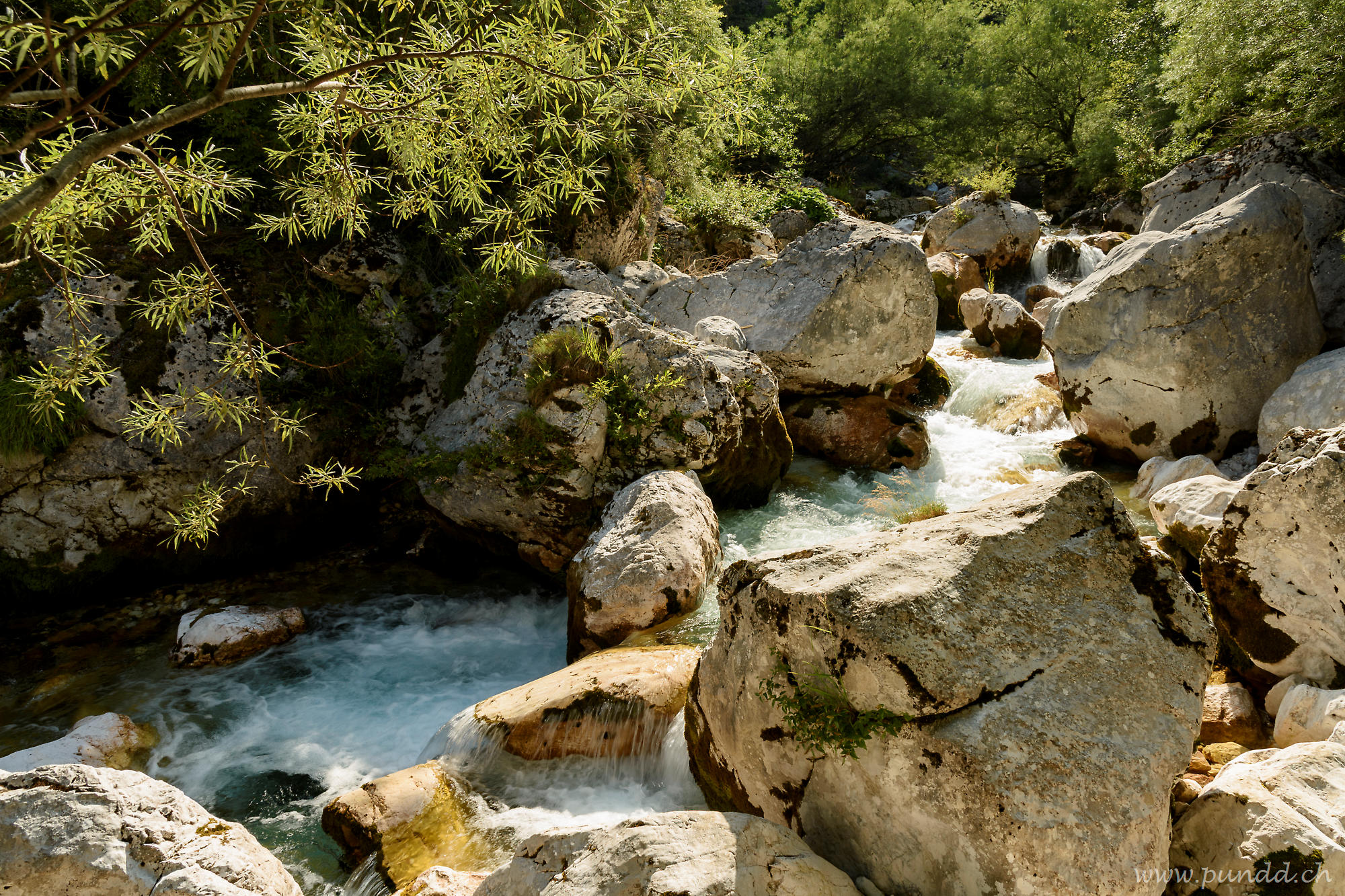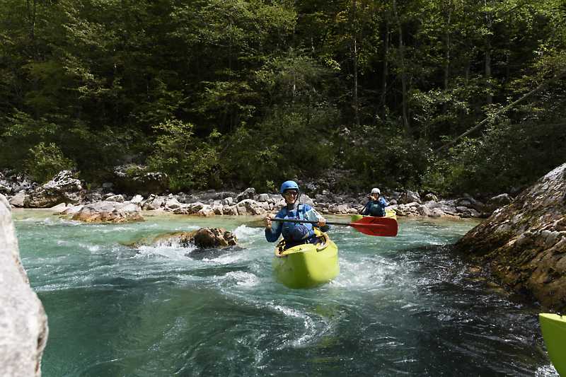 Nach Sprenica II wird der Fluss wilder und spannender (Wildwasser III). Wir manövrieren zwischen unzähligen Felsblöcken durch, immer wieder laden Kehrwasser, Walzen und Wellen zum Spielen ein.