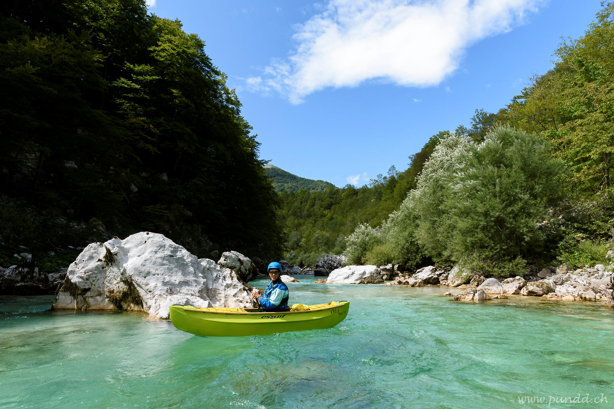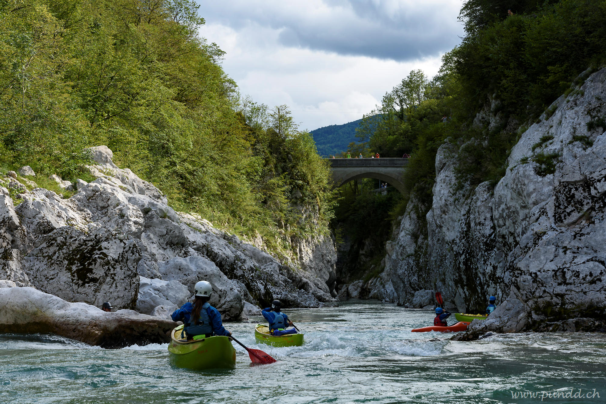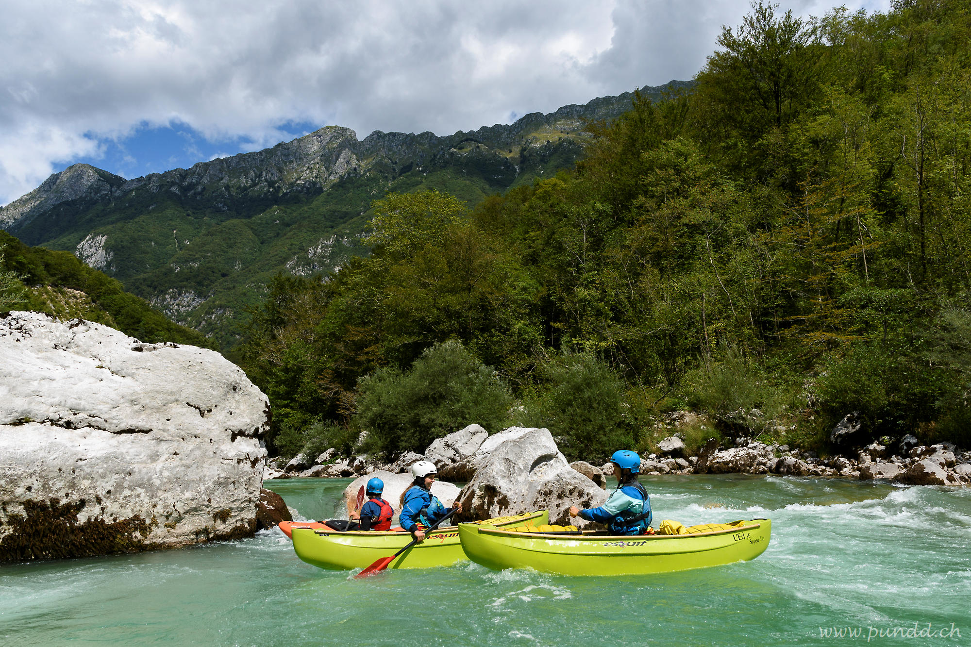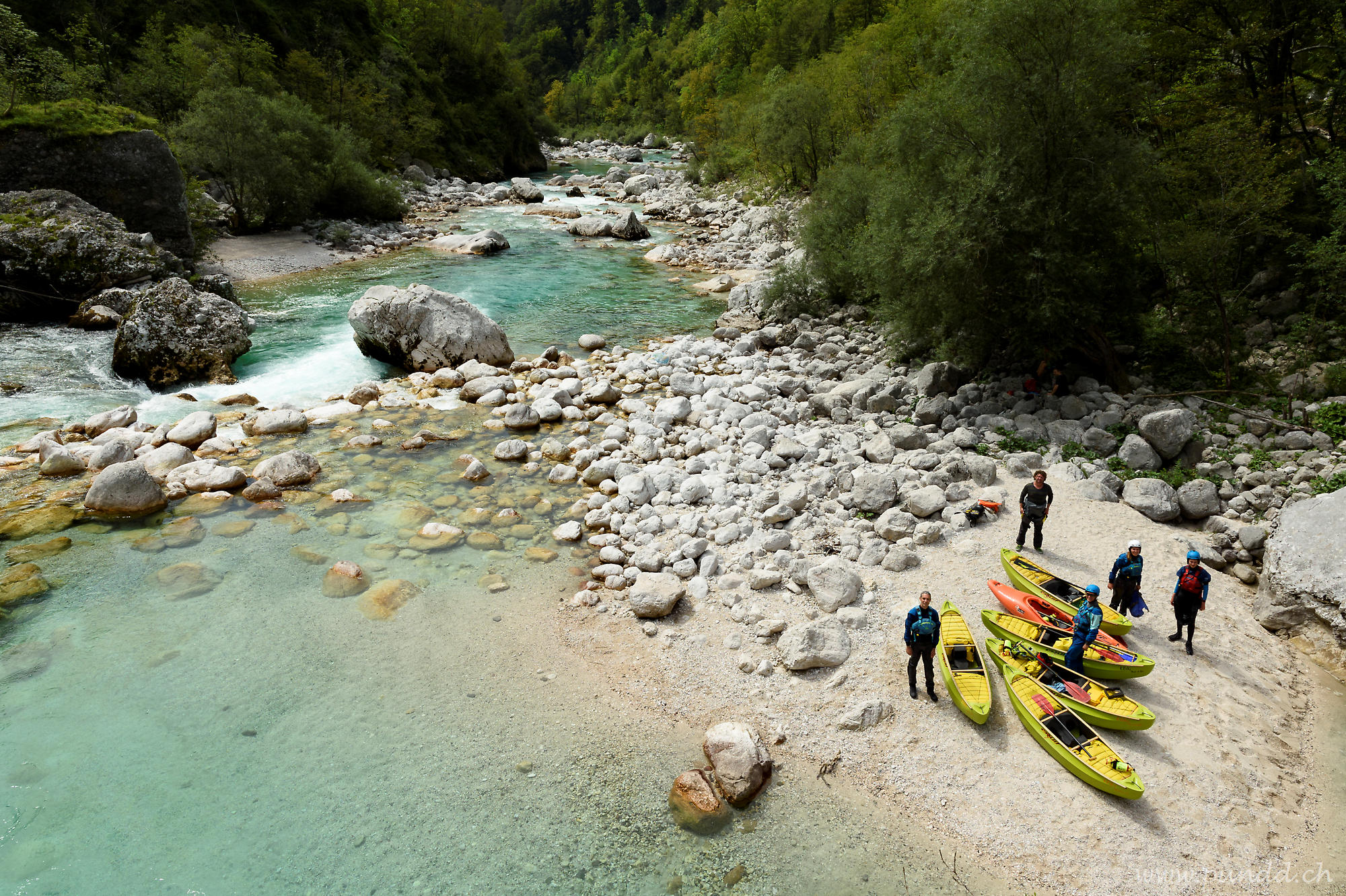Die Sǒca ist der Grund, wieso wir nach Slowenien reisten. Sieben Tage lang paddelten wir auf der Soca. Pausentag gab's keinen - dazu wars viel zu schön! Der Fluss war für uns geradezu perfekt: Herausfordernd, aber nicht überfordernd.