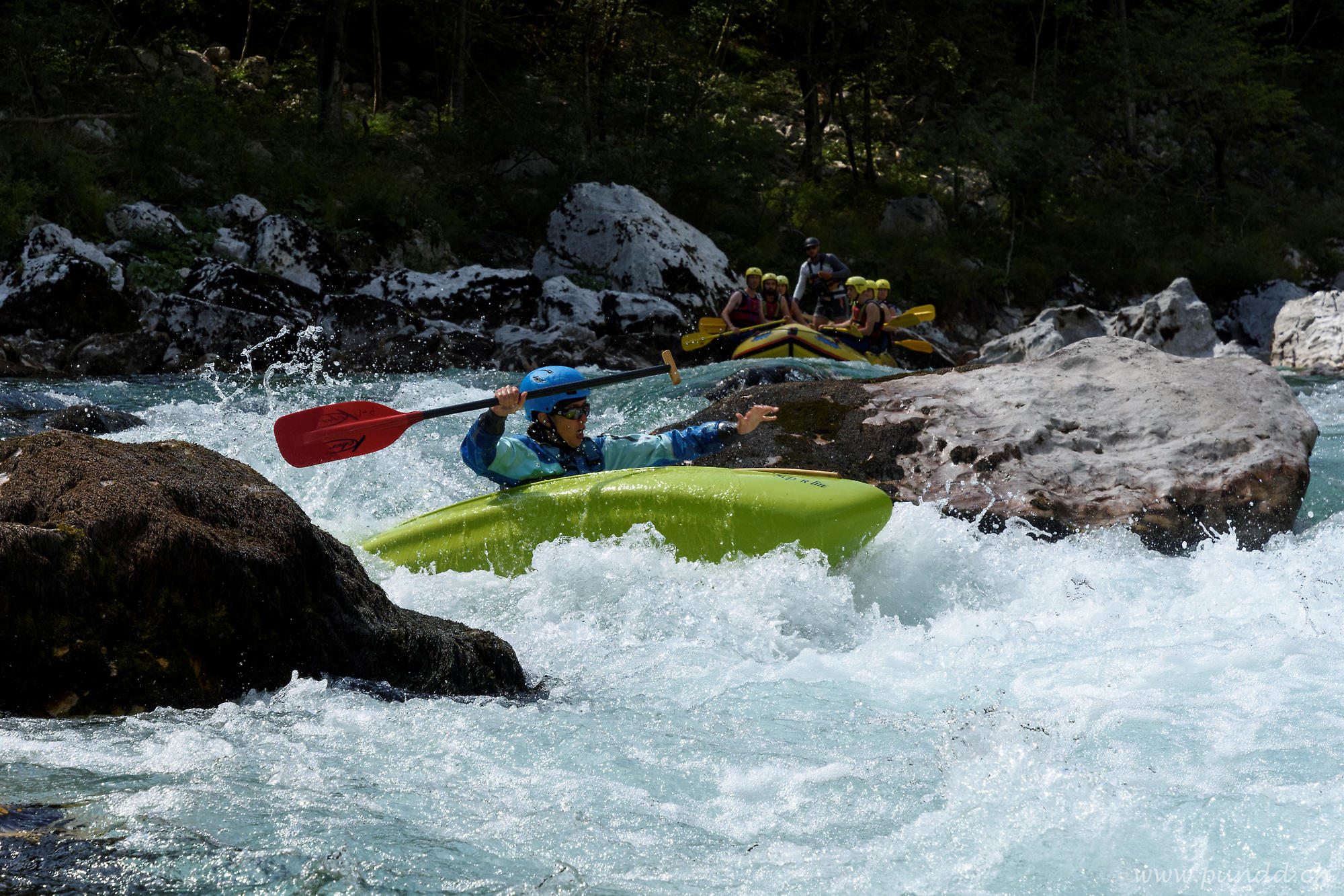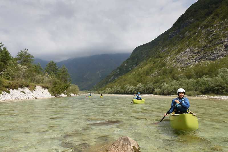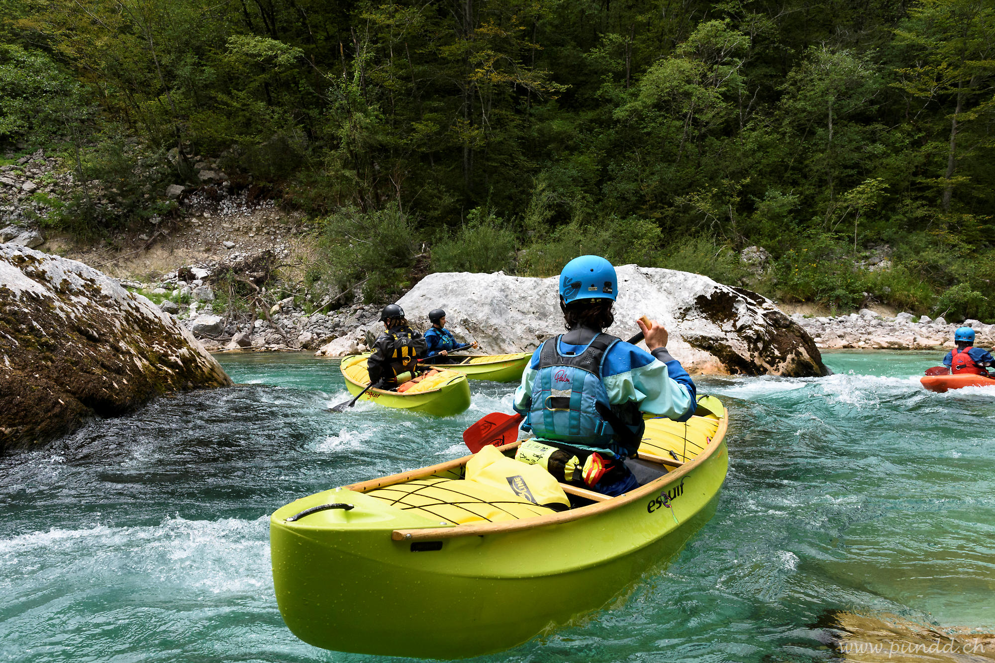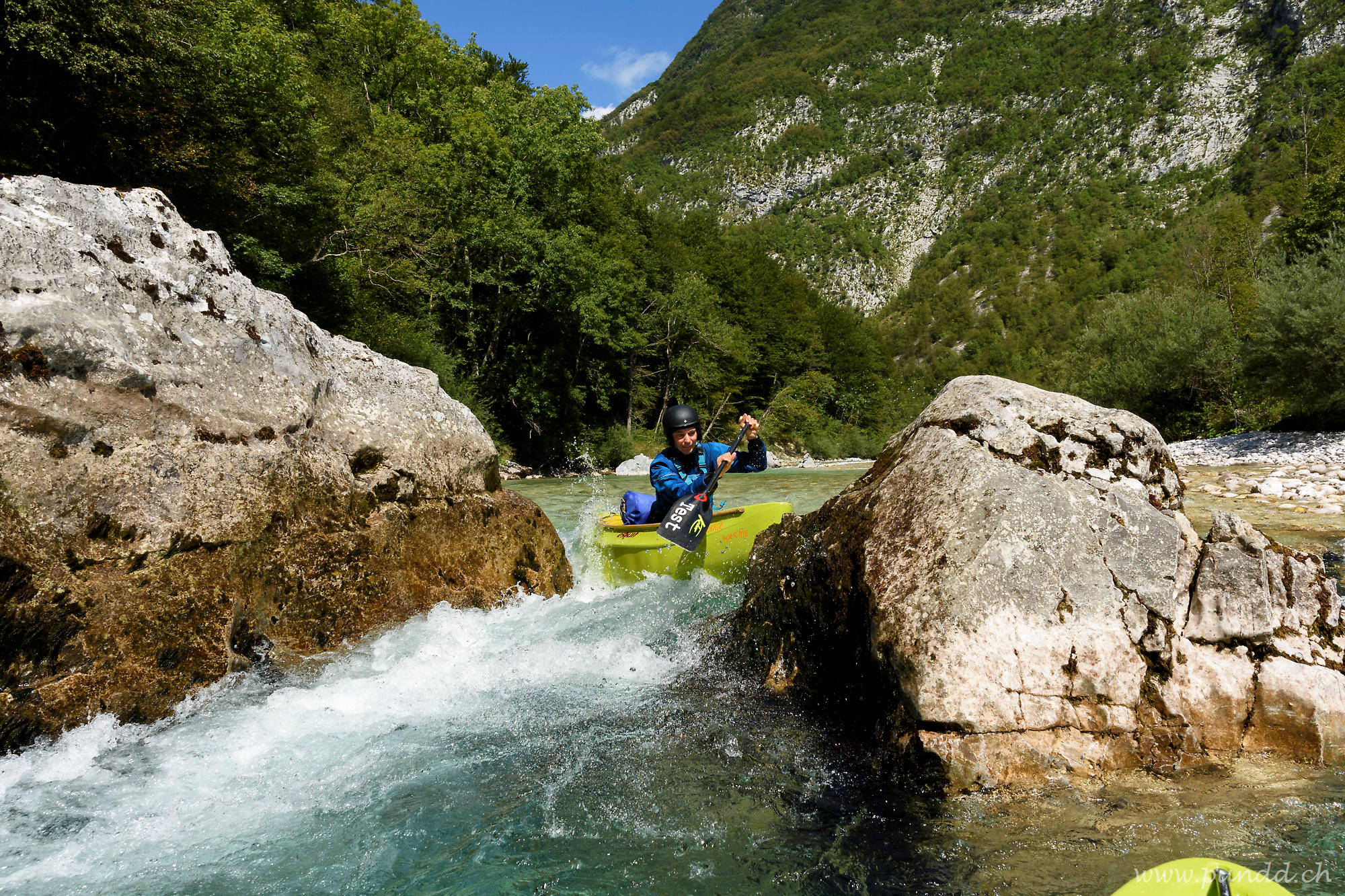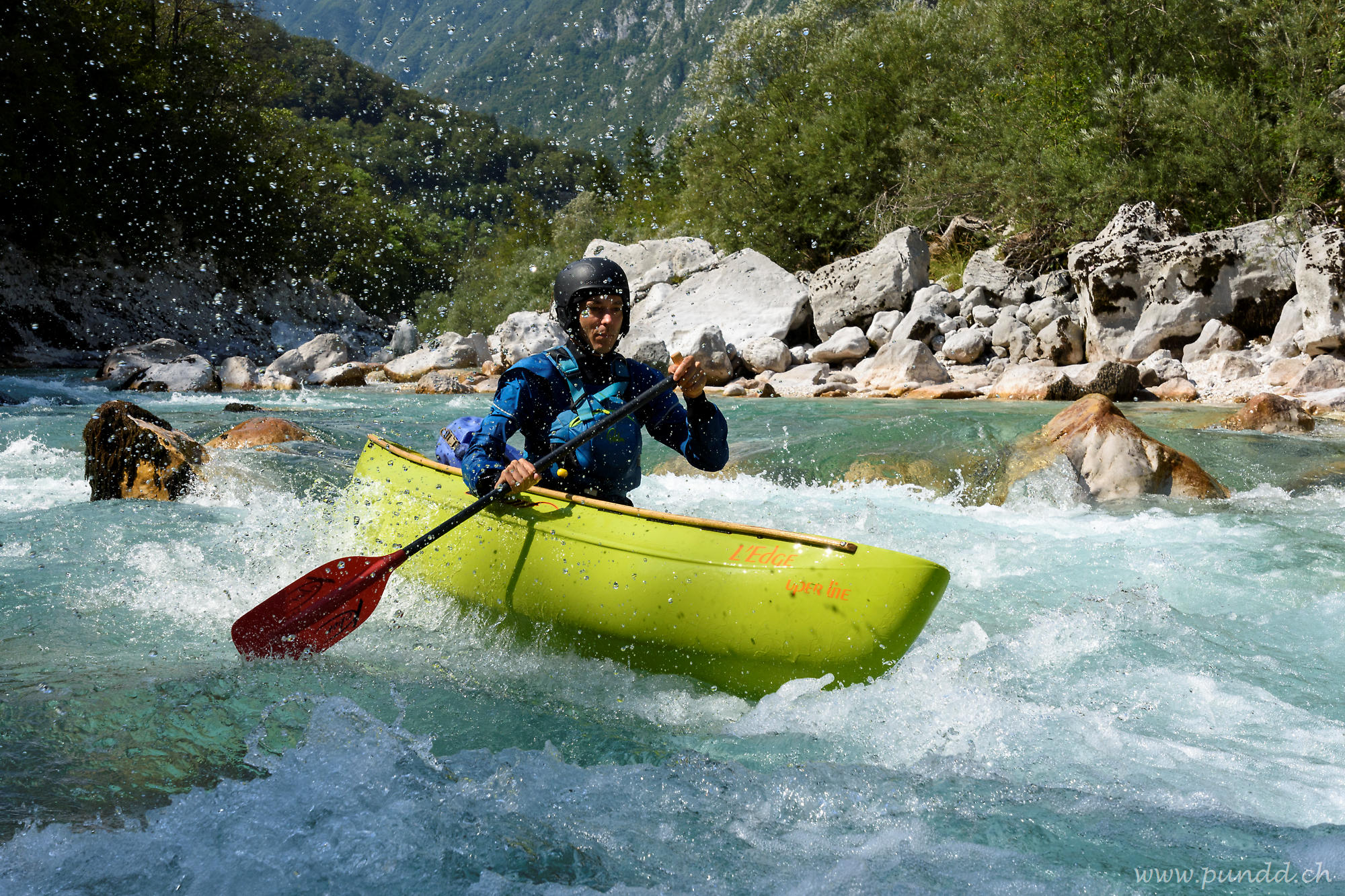 Die Sǒca ist der Grund, wieso wir nach Slowenien reisten. Sieben Tage lang paddelten wir auf der Soca. Pausentag gab's keinen - dazu wars viel zu schön! Der Fluss war für uns geradezu perfekt: Herausfordernd, aber nicht überfordernd.