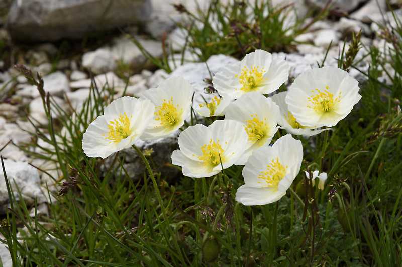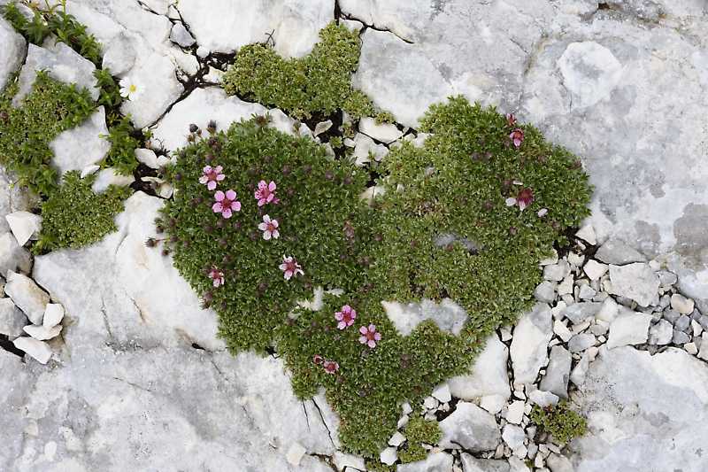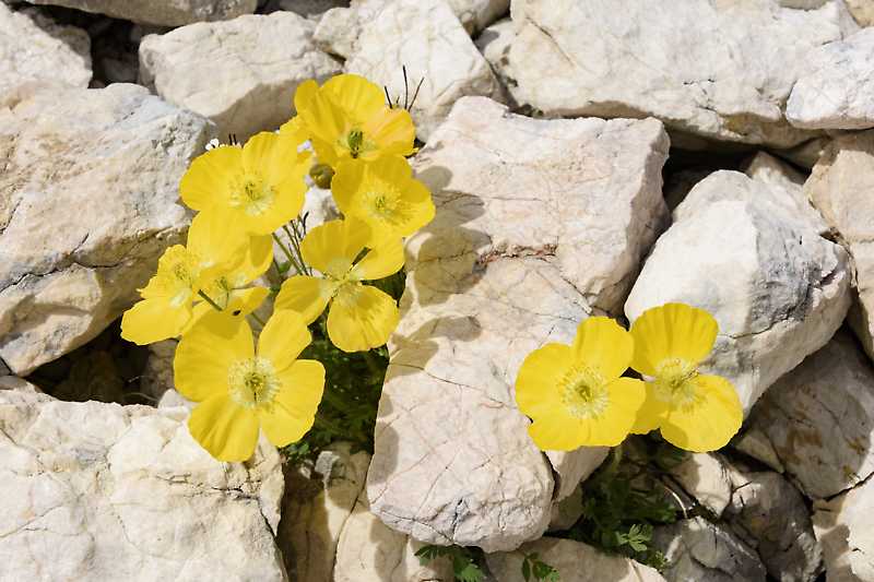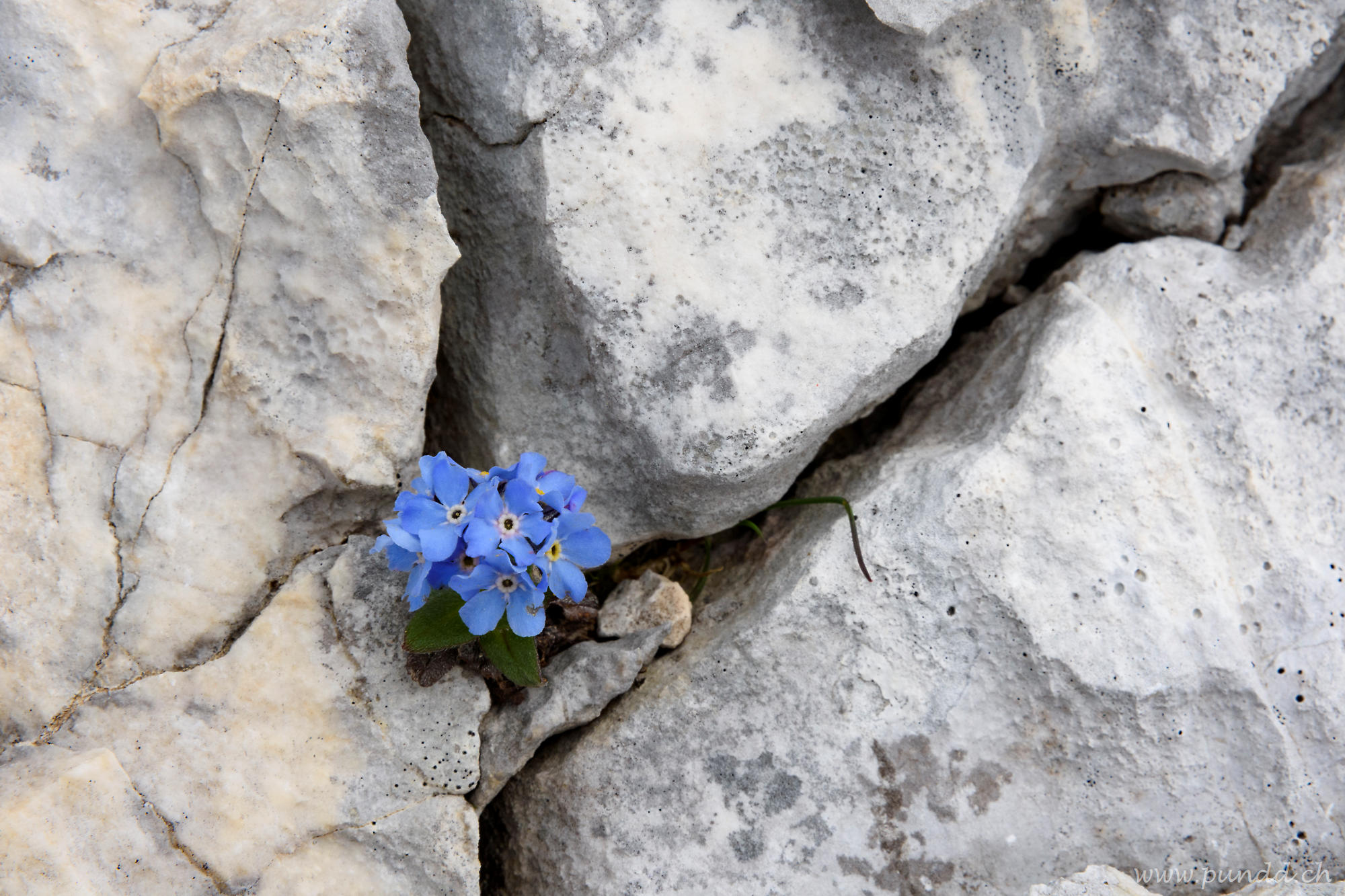 Trotz der lebensfeindlichen Umgebung gedeihen auch hier viele schöne Blumen. Der Kontrast zum Fels macht sie besonders fotogen! Es muss sehr lustig ausgesehen haben, wie wir alle mit den Kameras am Boden herumkrochen, um die winzigen Blümlein ins rechte Licht zu rücken.