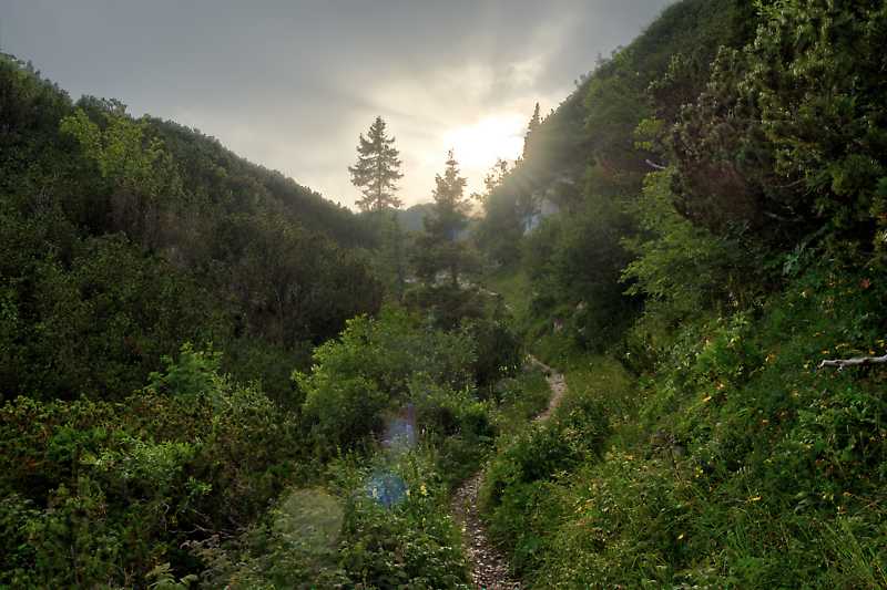 Für den Rest des Abstieges verschwand der Weg in einem wilden Zauber-Wald.