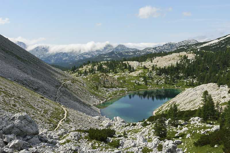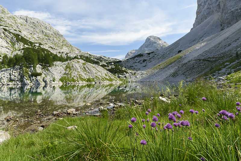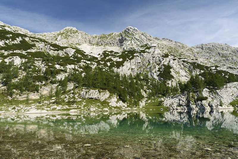 Der Jezero Ledvicah ist sicher der schönste der Triglav Seen. Wir erreichten ihn früh genug, so dass noch kein Windhauch die Reflektionen der Wasseroberfläche trübte.