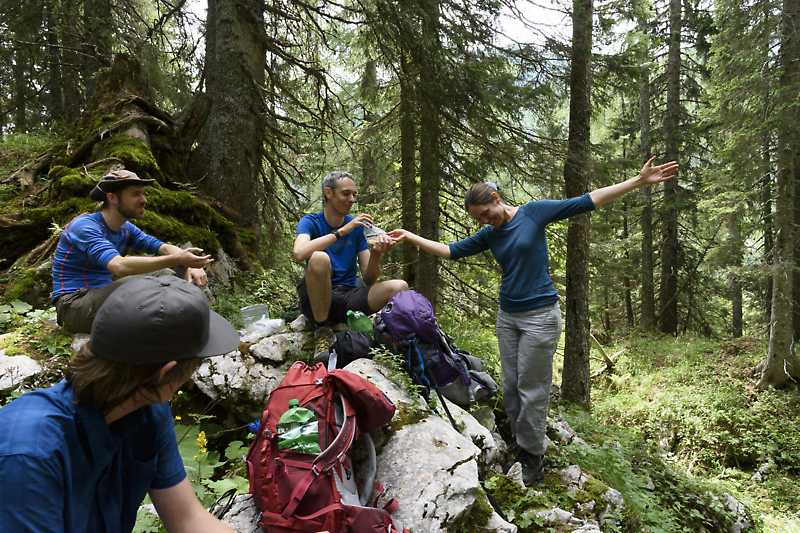 Nach dem eher dürftigen Morgenessen waren wir über das Angebot der Hütte Vodnikov dom na Velem polju hocherfreut: Zum Znüni gab's leckere Apfelstrudel und trinkbaren Kaffe!