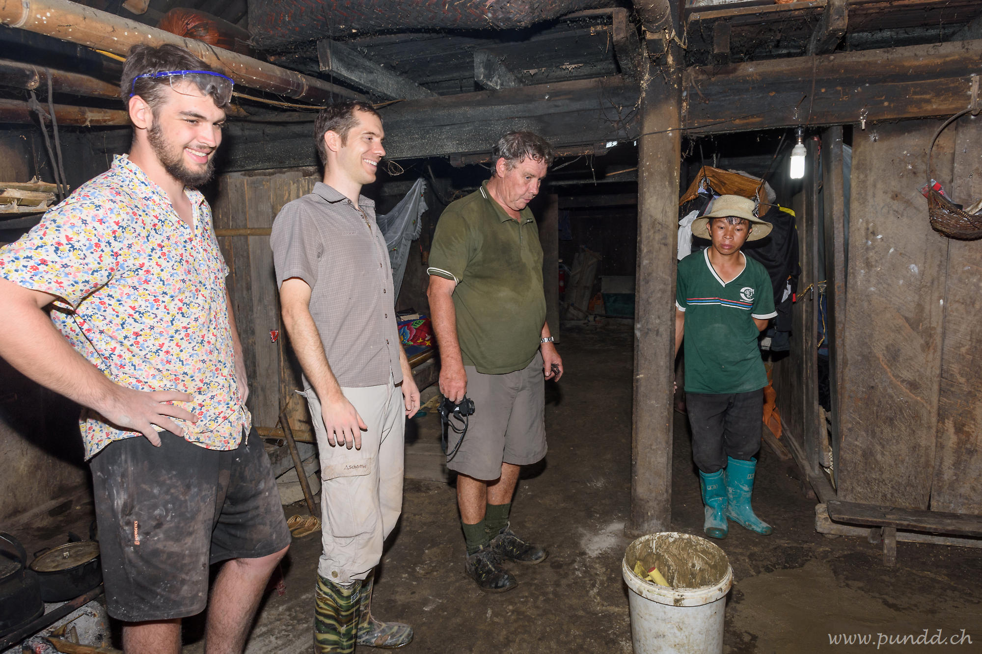 Die Dachplatten waren nicht sonderlich stabil, weshalb nur die H’Mong Männer und die leichtesten Europäer rauf durften. Die H’Mong waren es sich sowieso besser gewohnt, auf dem rutschigen und steilen Dach rumzulaufen.
