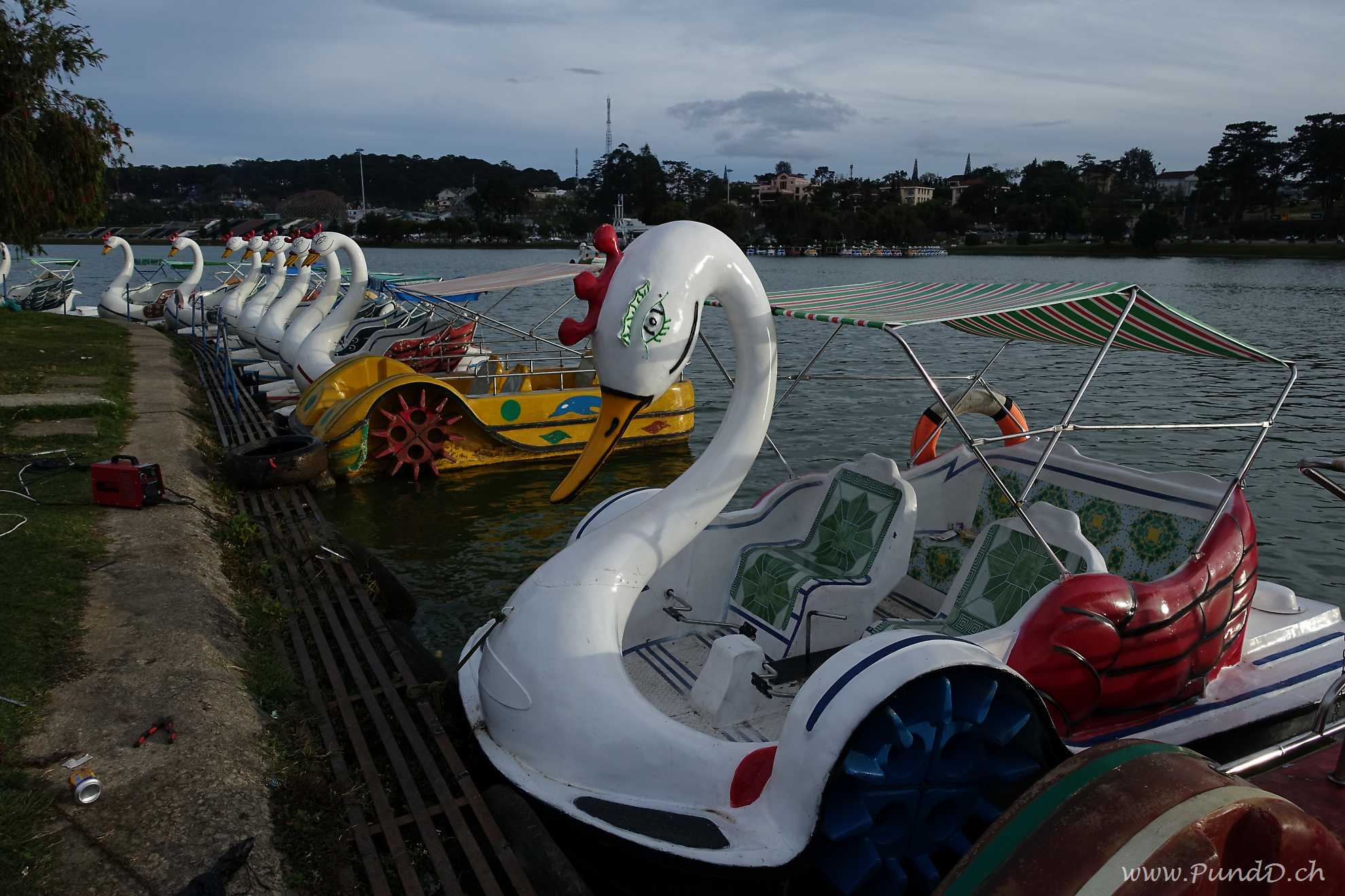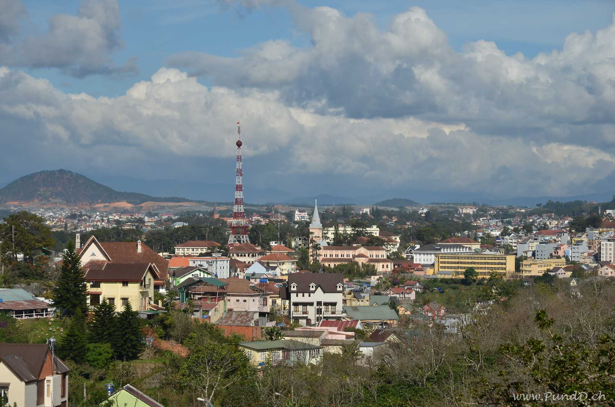 Um der Hitze von Saigon zu entfliehen, gründeten die französischen Kolonialisten die Stadt Dalat im zentralen Bergland, auf 1'500 m. ü. M. Von den Franzosen stammt auch der Übername "Klein-Paris". Sie haben sogar einen kleinen Eiffelturm gebaut, um ihr Heimweh zu bekämpfen. Sehr viele Vietnamesen kommen hierher auf ihrer Hochzeitsreise. Überall sieht man Läden mit Hochzeitskleidern und im See schwimmen Schwanenböötchen.