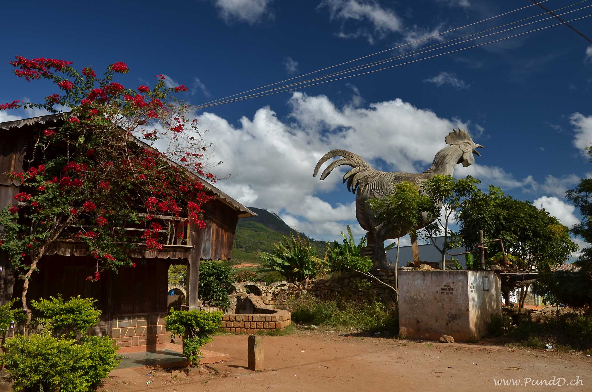 Die Wanderung startete im Chicken Village, einem kleinen Dörflein einer örtlichen Minderheit, welches für das riesige Betonhühnchen im Dorfkern bekannt ist. Um das Dorf liegen zahlreiche Felder, auf denen Blumen und Gemüse angebaut werden. Hier im Hochland gedeihen ähnliche Pflanzen wie bei uns: Tomaten, Kartoffeln, Zwiebeln.