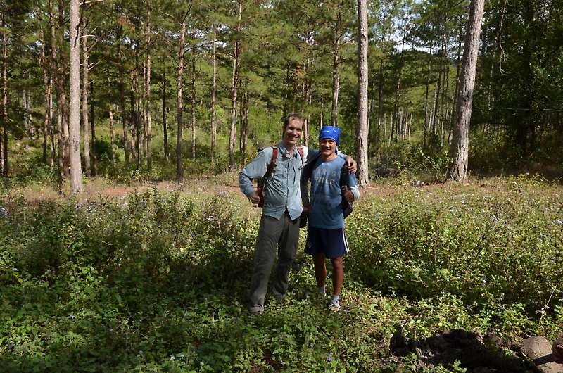 Peter hatte nach der Bike-Tour noch nicht genug und wollte umbedingt noch eine Wanderung in der Umgebung machen, um noch etwas mehr von der Landschaft zu sehen. Es bedurfte aber einiger Telefonate um überhaupt einen Guide zu finden, da alle schon mit Canyoning beschäftigt waren - an dem Tag muss es am Wasserfall wohl einen enormen Andrang gegeben haben! Da sich niemand anderes zum Trekking fand, wurde Peter schlussendlich nur von seine Guide Loc begleitet.