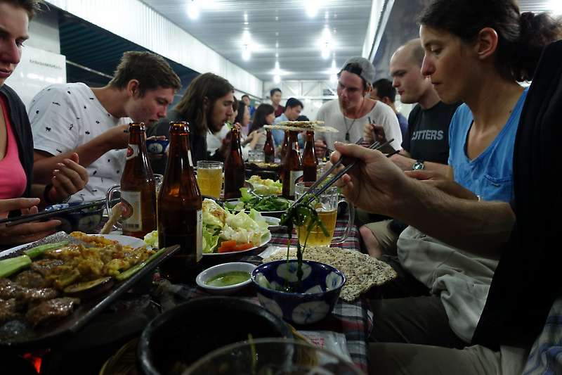 An unserem letzten Abend in Dalat besuchten wir zusammen mit den andern Backpackern ein Vietnamesisches Grillrestaurant. Ein bischen wie unser Fondue Chinoise!