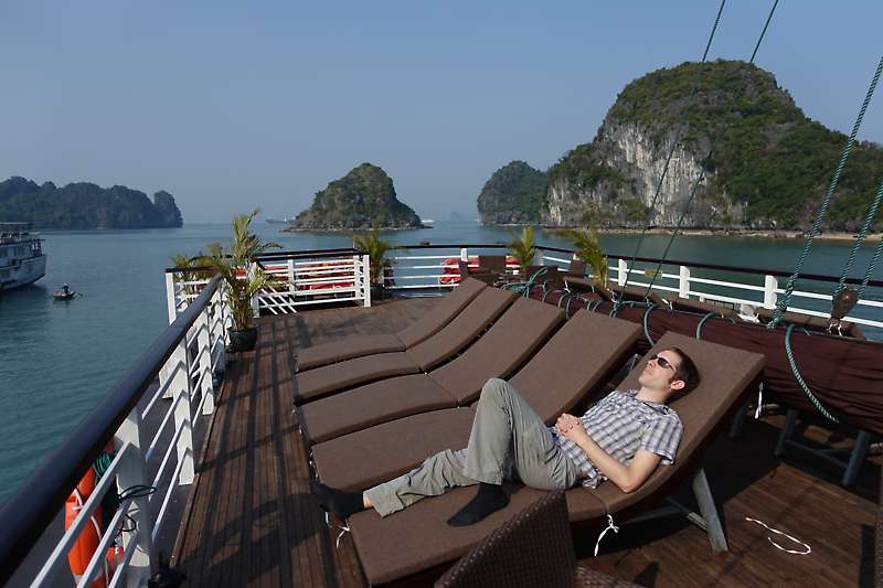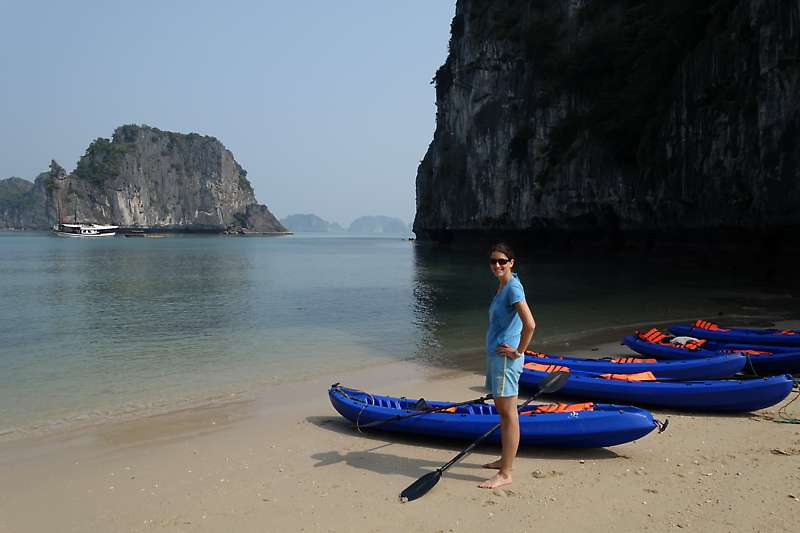 Am zweiten Tag besuchten wir die etwas weiter entfernte Bai Tu Long Bay. Die Inselchen hier sind zwar etwas niedriger als die in der Halong Bay, dafür verirren sich viel weniger Auslfugsboote hierher.