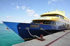 Die Insel Cozumel liegt direkt vor Playa del Carmen, man kann die Hoteltürme und Kreuzfahrtschiffe der Hauptstadt San Miguel vom Strand aus sehen. Nachdem wir nun die Insel sozusagen vier Monate lang vor der Nase hatten, sind wir an unserem zweitletzten Tag in Playa doch noch hingefahren. Wir hatten zuvor nicht so lust dazu verspürt, da uns einige Studenten erzählt hatten, dass es dort gleich aussieht wie in Playa, nachdem aber eine Studentin uns von der Schönheit der Insel vorgeschwärmt hatte, änderten wir unsere Meinung.