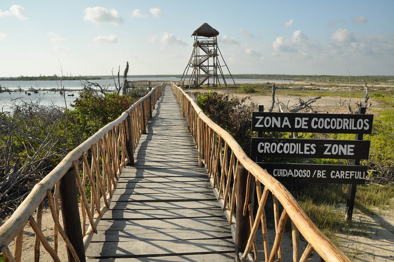 Auf dem Rückweg sahen wir ein Schild: Krokodil-Lagune. Natürlich schauten wir uns das genauer an - es hatte tatsächlich einige Krokodile. Beobachtet haben wir die Tiere von einem Holzsteg aus, der nur wenig über der Wasseroberfläche lag - ziemlich unheimlich!